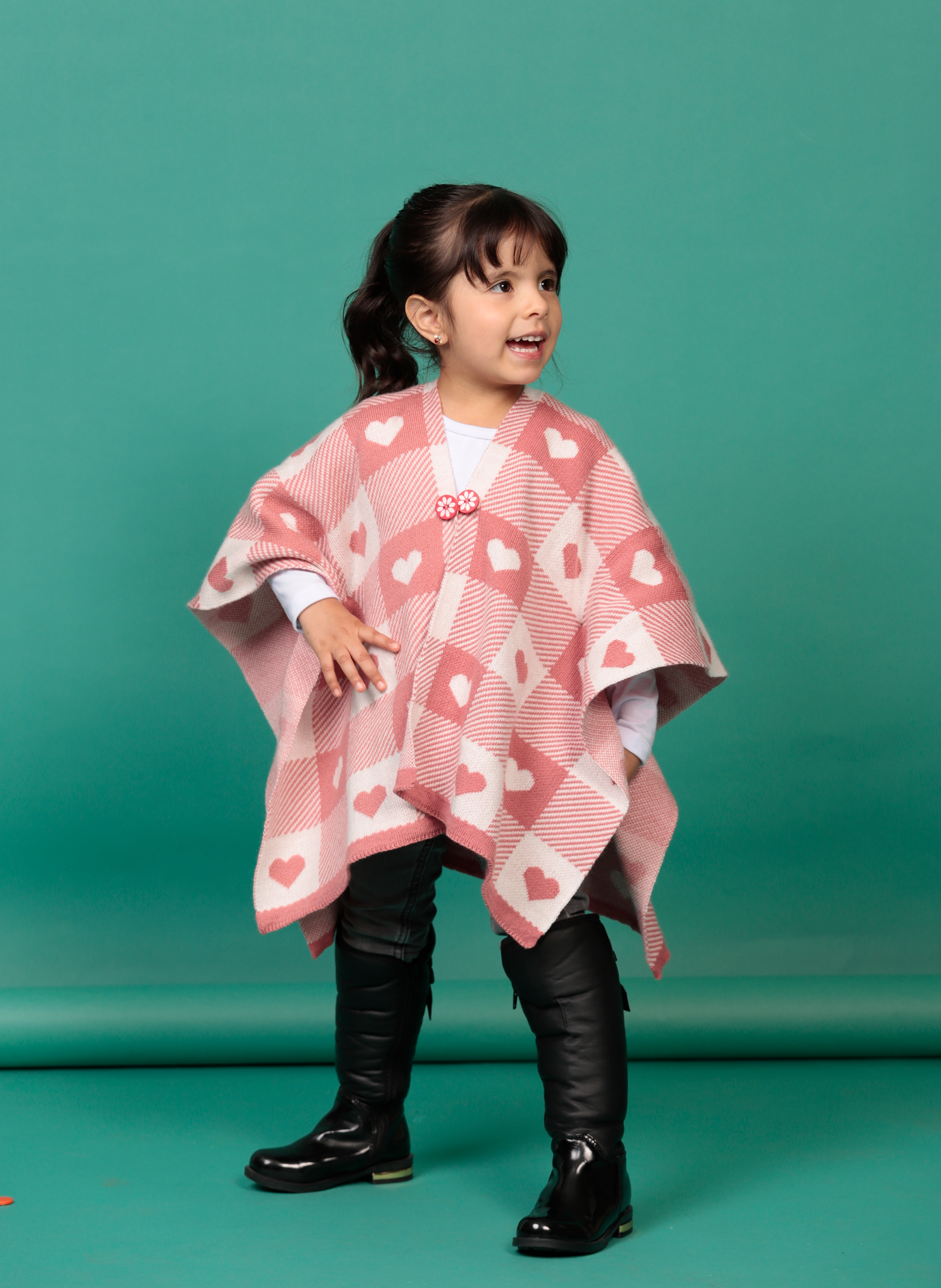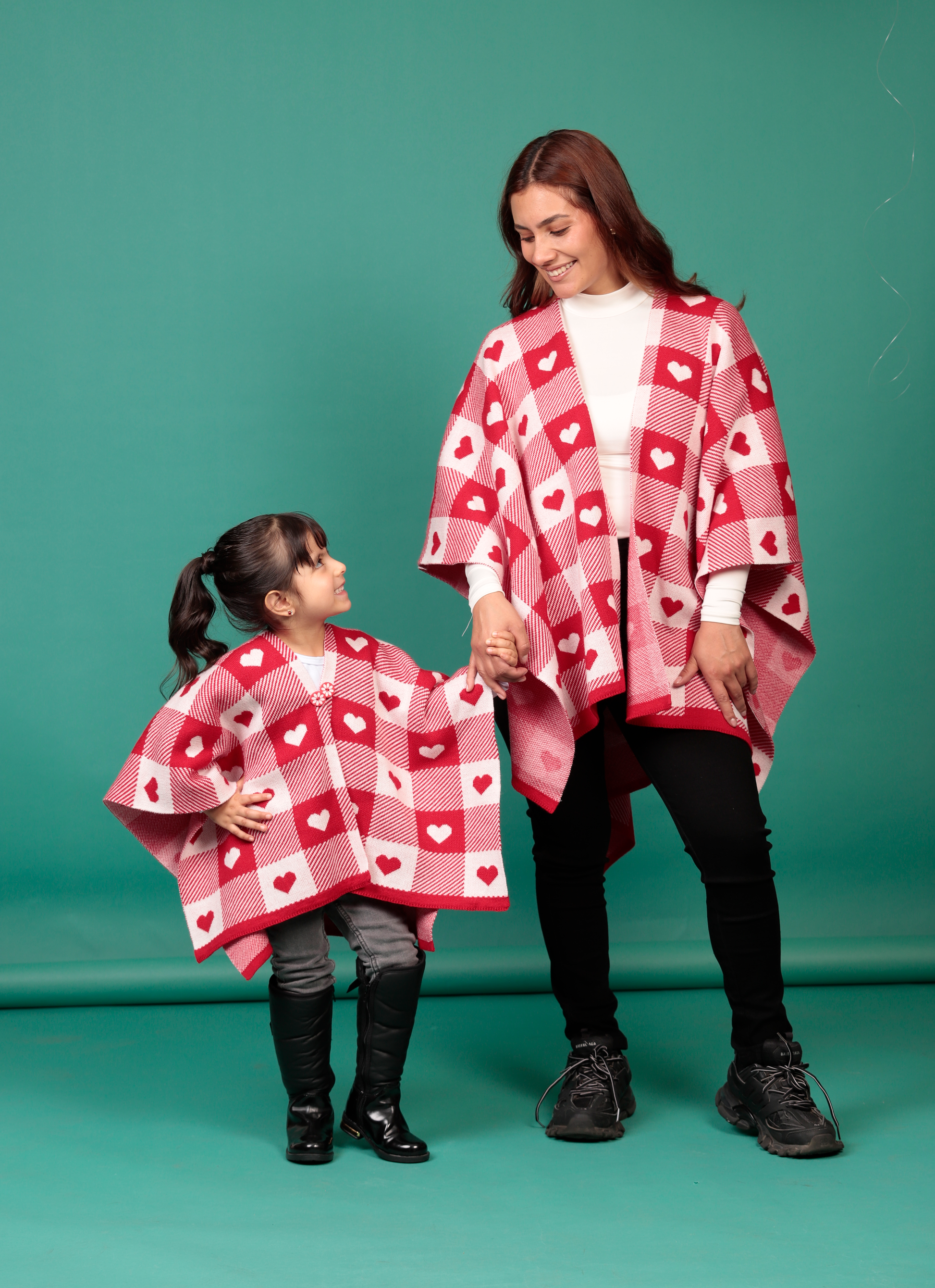La ruana corazón mamá e hija está disponible con o sin botón frontal y puede ser usada como capa o ruana. El tejido es 100% colombiano y le dará un toque de color a tus días. Además, si tienes una hija, podrás hacer un outfit a juego con esta hermosa prenda.