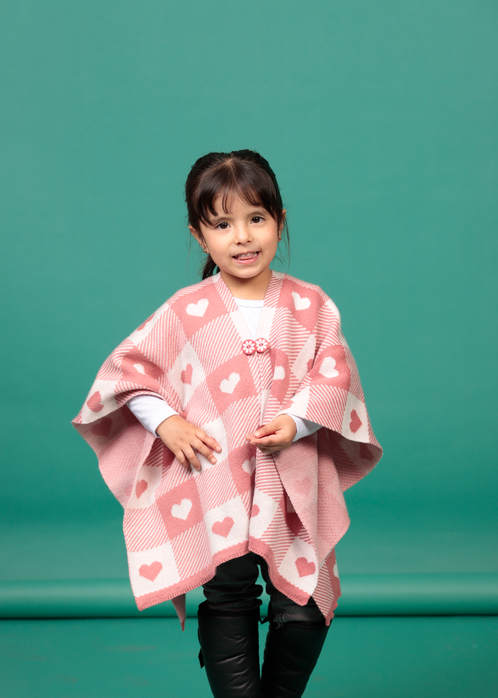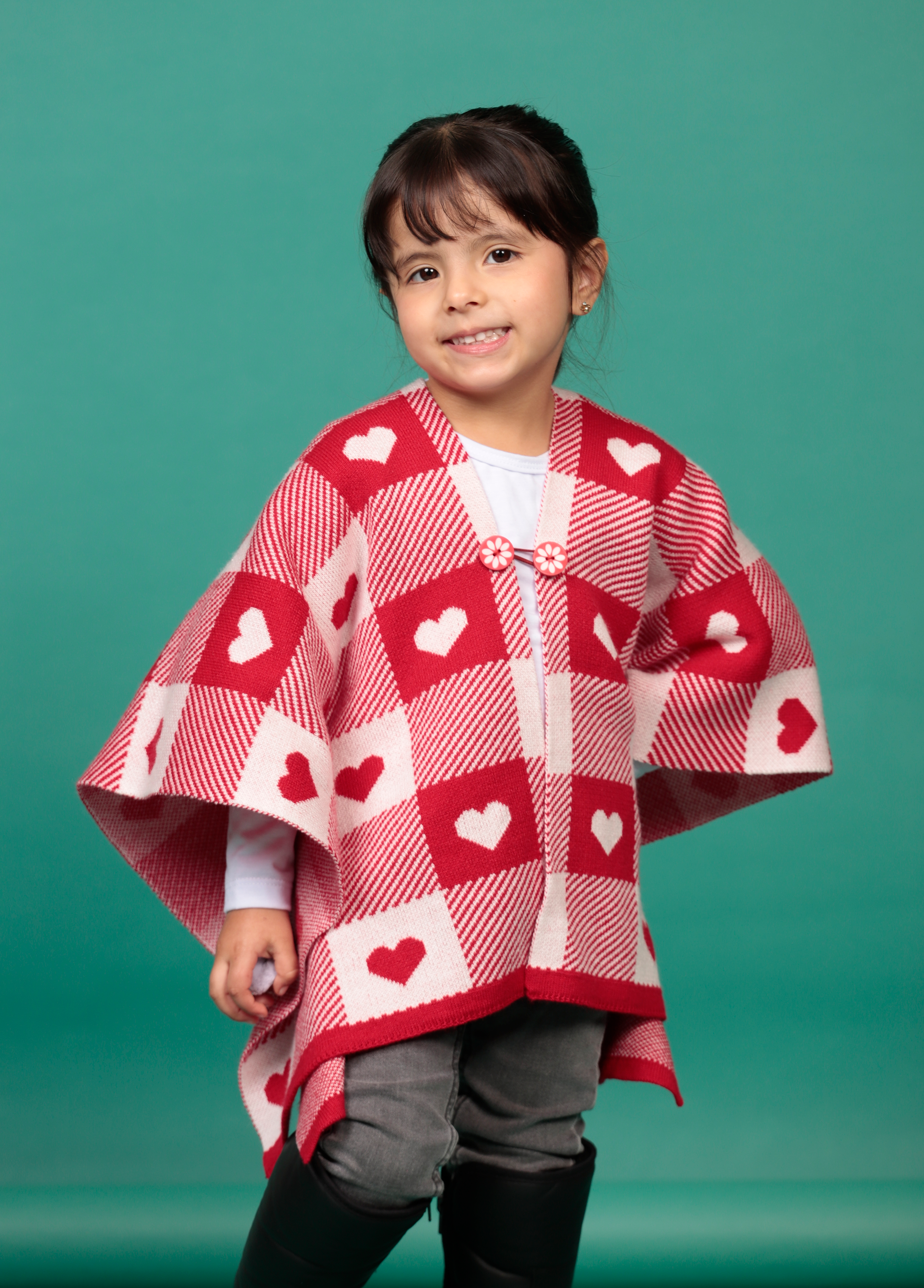 Ruana tejida para niña, con botón en la parte frontal. tejida en hilo de excelente calidad. NO PICA. Nuestra modelo esta usando la talla 4-6